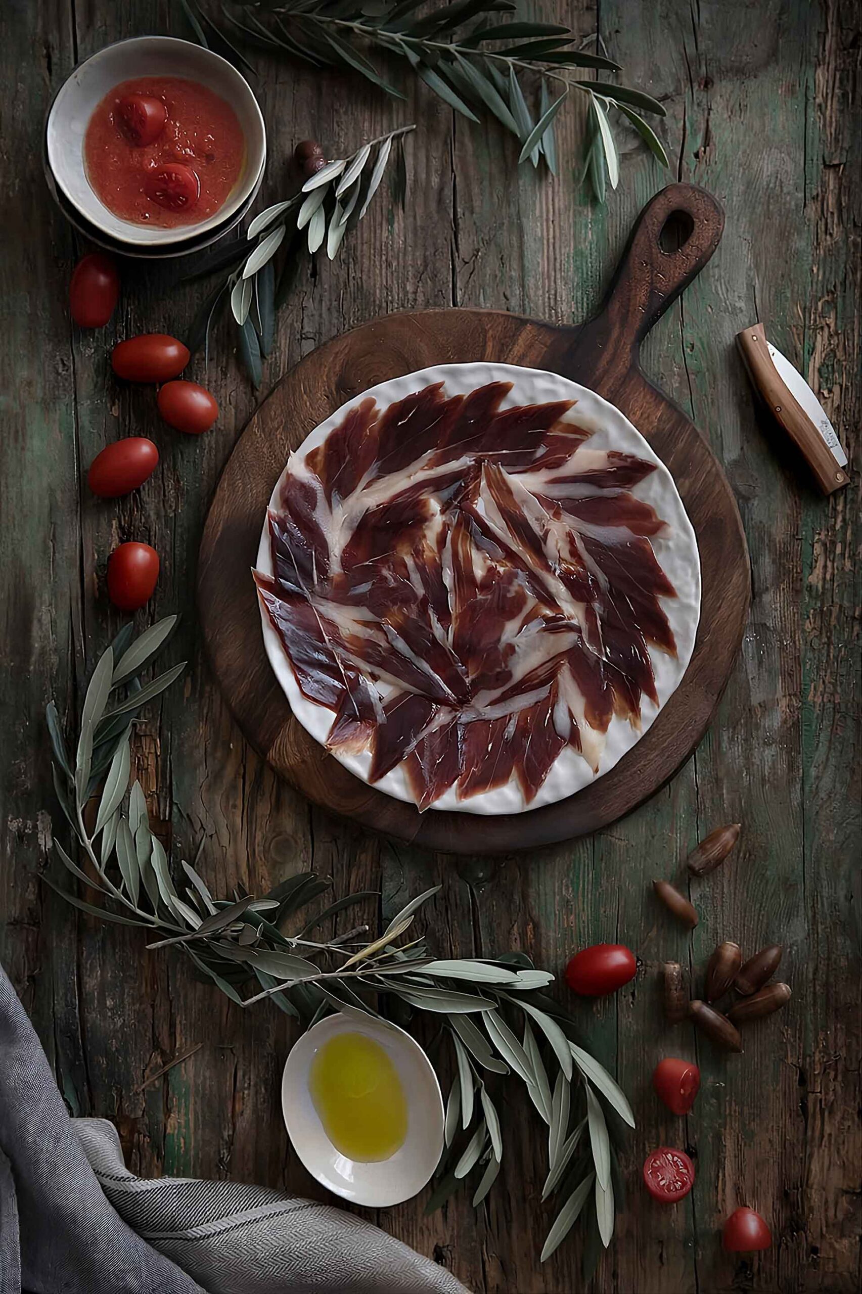 Destaca por su untuosidad y una textura que sorprende por lo bien que se funde en el paladar. Es un jamón muy equilibrado, fácil de comer y con ese aroma característico del cerdo alimentado con bellota.