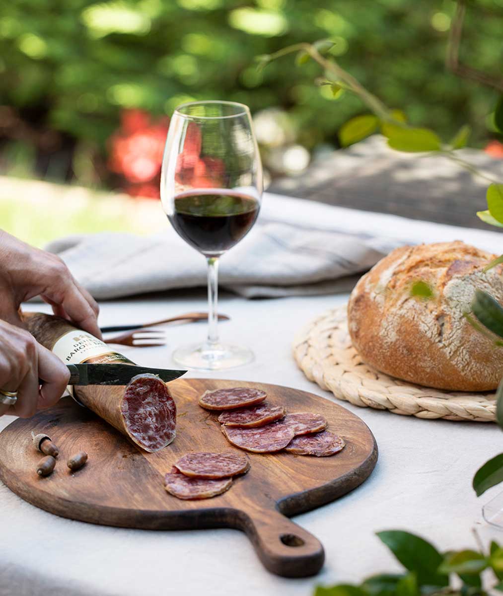 La versión más estilizada del tradicional salchichón ibérico. Gracias a su diámetro más fino y una curación óptima, ofrece una textura tierna y una mordida sumamente agradable. Un embutido de sabor equilibrado, suave pero con carácter, ideal para tener siempre en la despensa.